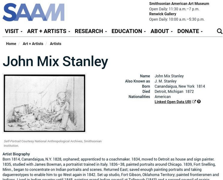 As part of the Smithsonian Art Museum's database of artists, John Mix Stanley is described here along with information on his contributions to art through his work as a portrait painter.