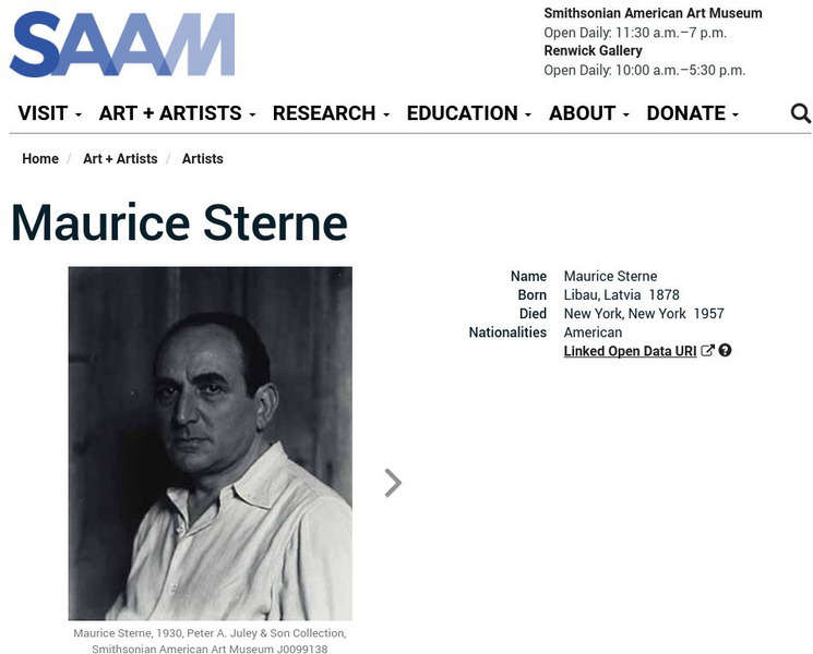 As part of the Smithsonian Art Museum's database of artists, Maurice Sterne is described here along with information on his contributions to art through his work with modern painting and sculpting.
