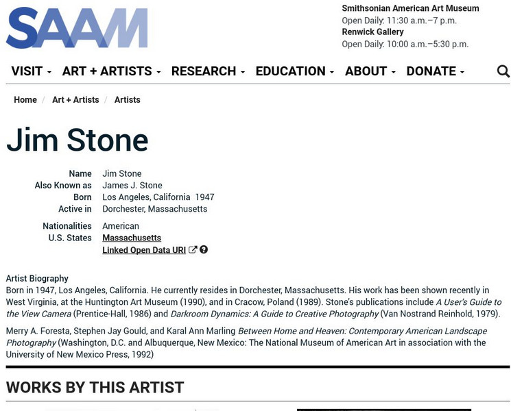 As part of the Smithsonian Art Museum's database of artists, Jim Stone is described here along with information on his contributions to art through photography.