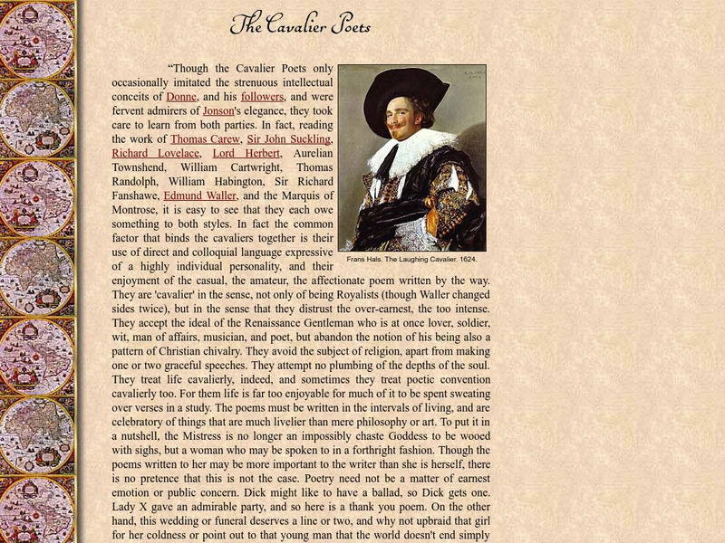 This site provides an indepth introduction to the Cavalier Poets. Includes links to related people and topics.