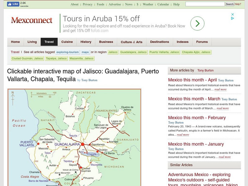 MexConnect offers a map showing all the major cities located in Jalisco, Mexico.