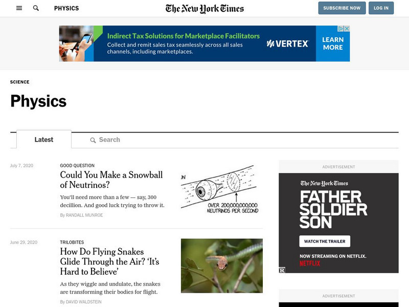 [Free Registration/Login Required] The New York Times maintains daily coverage of the latest in the physical sciences.