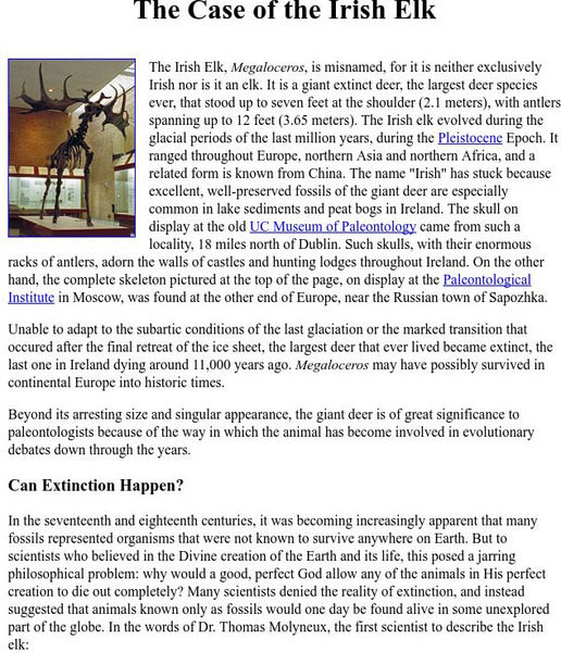 This site provides a general overview of the extinct deer species, the Irish Elk.