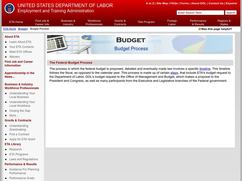The Federal Government budgeting process is described. The link called "STEPS" further describes the budget process.