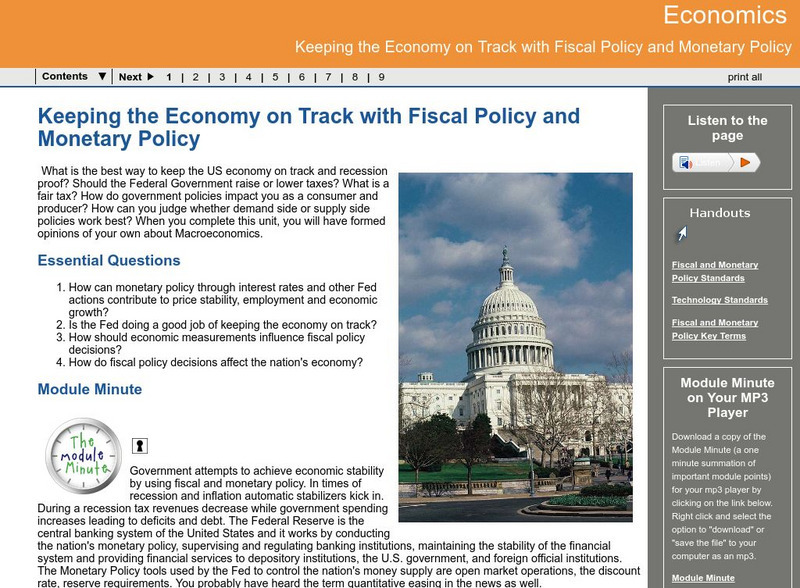 Macroeconomics learning module teaches about fiscal policy and monetary policy with interactive multi-media materials.