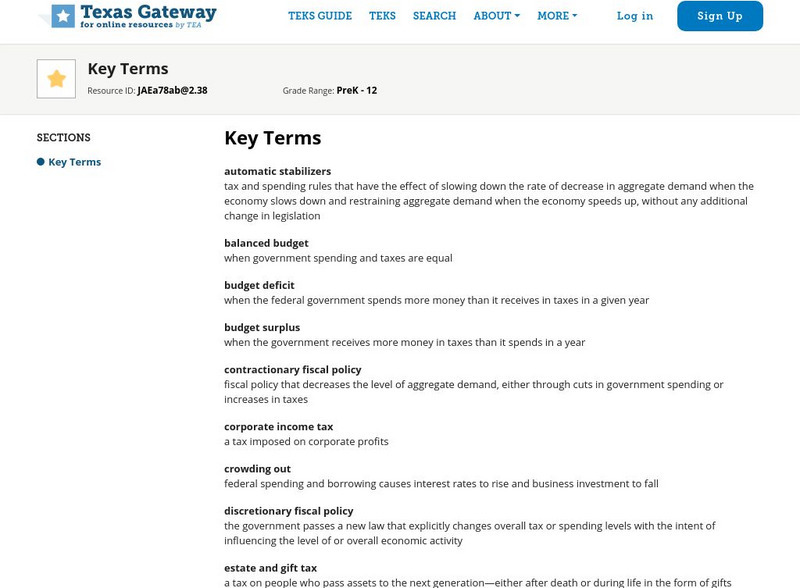 Texas Gateway: Ch. 16: Government Budgets and Fiscal Policy: Key Terms