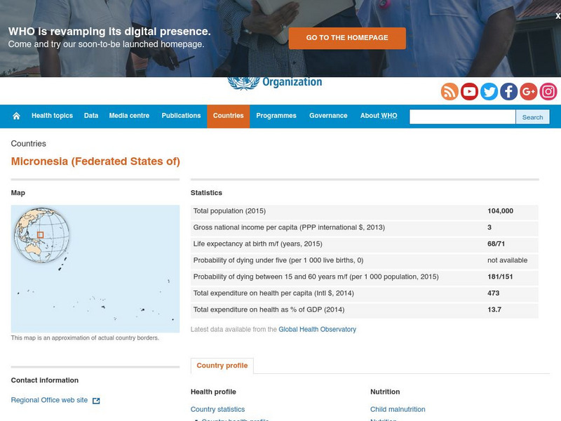 Learn about core health indicators in the Federated States of Micronesia in this World Health Organization country profile, which includes demographic and current health information.