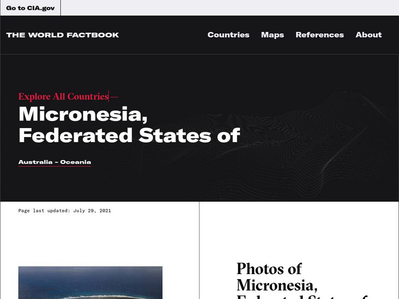This resource from the CIA World Factbook provides a detailed fact sheet of the Federated States of Micronesia. The content covers the country's geography, people, government, economy, communications, transportation, military, and...
