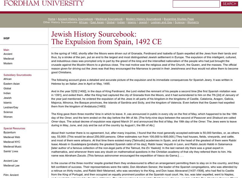 Fordham University: Jewish History Sourcebook: Expulsion From Spain