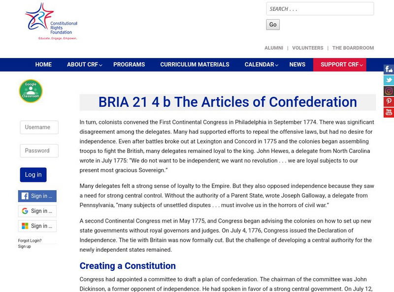 Constitutional Rights Foundation: Centralized vs. Decentralized Rule: The Articles of Confederation