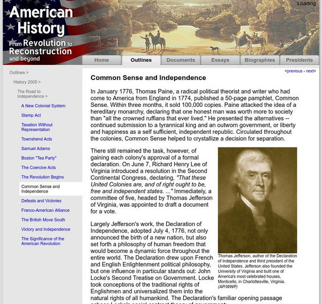 Overview of the philosophy of Thomas Paine in his widely read Common Sense pamphlet, and "natural rights" philosphy as expressed in the opening passage of the Declaration of Independence.