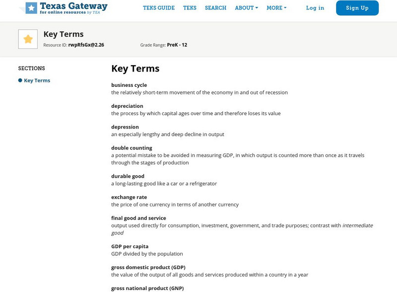 Texas Gateway: Chapter 5: The Macroeconomic Perspective: Key Terms