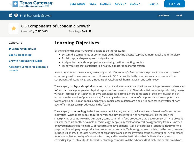 Texas Gateway: Ap Macroeconomics: Chapter 6: Components of Economic Growth