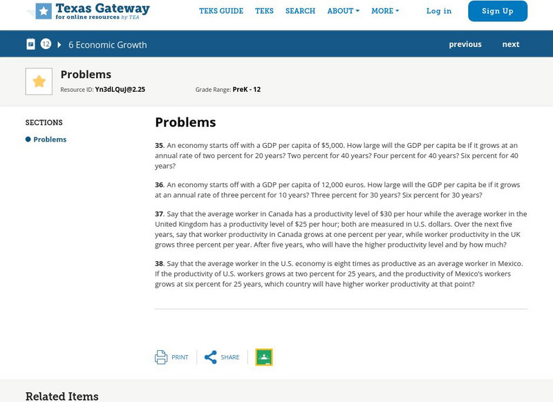 Texas Gateway: Ap Macroeconomics: Chapter 6: Economic Growth: Problems