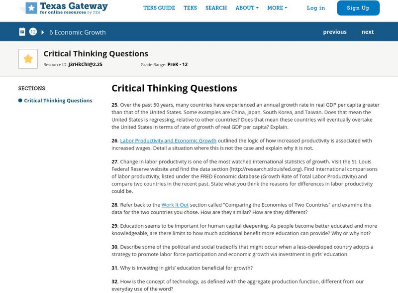 Texas Gateway: Chapter 6: Economic Growth: Critical Thinking Questions