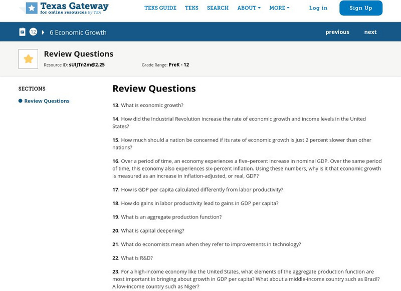 Texas Gateway: Macroeconomics: Chapter 6: Economic Growth: Review Questions