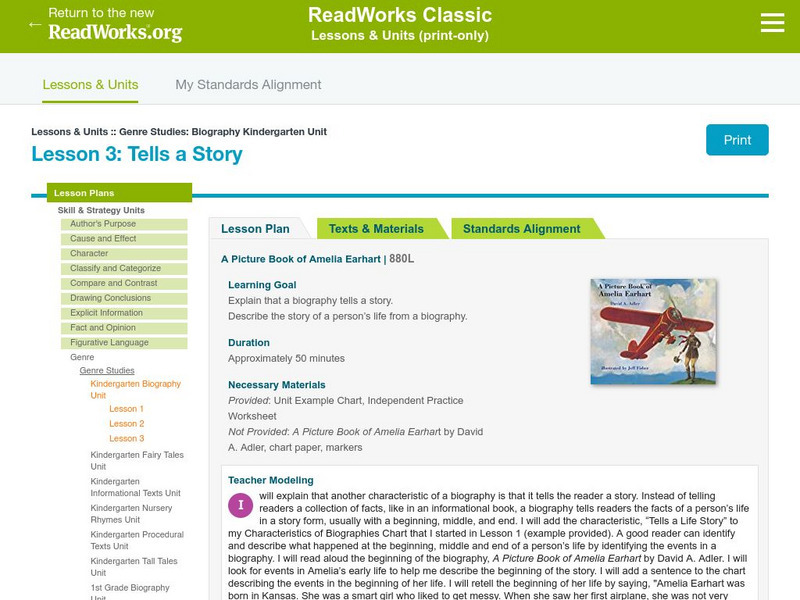 [Free Registration/Login Required] A lesson plan and materials to teach kindergarten students that a biography tells the story of a person's life.