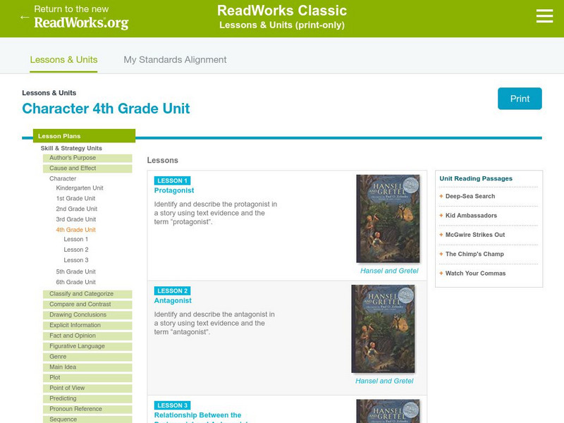 [Free Registration/Login Required] A three-lesson unit on characters where students learn about a story's protagonist and antagonist and the relationship between them by reading the book Hansel and Gretel by Rika Lesser. With free login,...