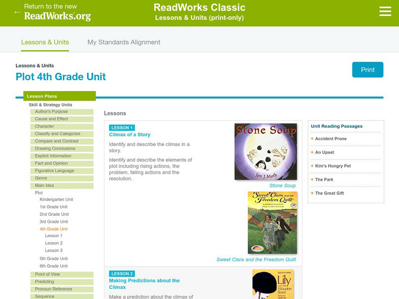 Read Works: Fourth Grade: Three Lesson Unit: Plot