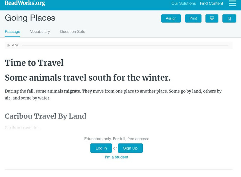 [Free Registration/Login Required] An informational text about animals that migrate. A question sheet is available to help students build skills in reading comprehension.
