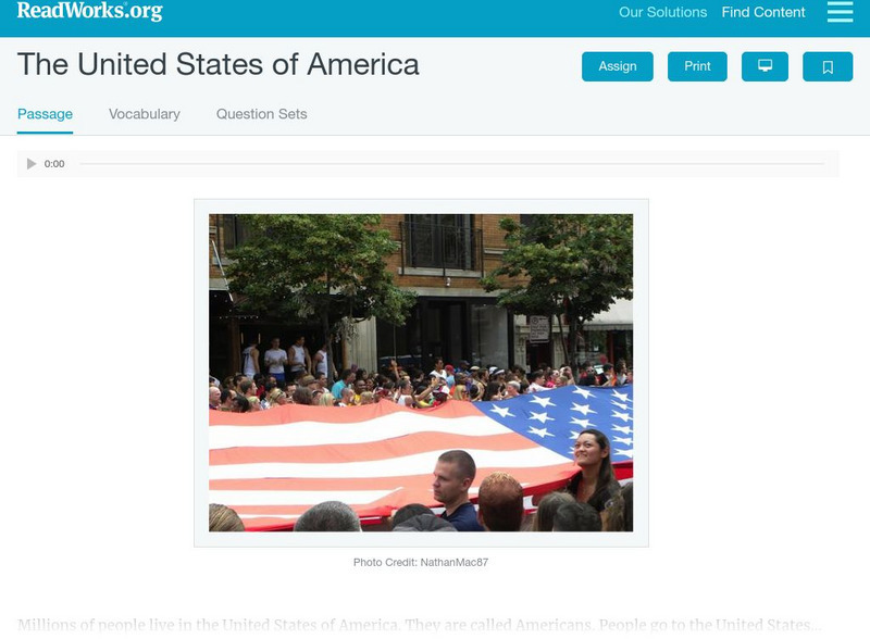 [Free Registration/Login Required] This nonfiction passage discusses what it means to be an American. This passage reinforces essential reading comprehension skills. Opportunities for vocabulary acquisition are also included. Several...