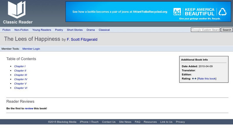 Classic Reader: The Lees of Happiness by F. Scott Fitzgerald