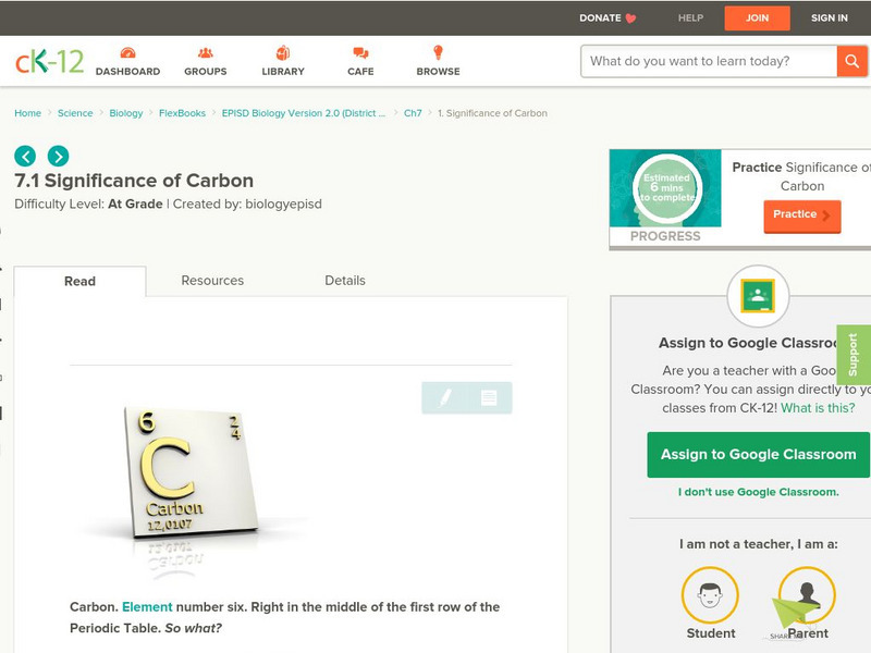 [Free Registration/Login may be required to access all resource tools.] This activity explores the significance and functions of carbon and explains why carbon is essential to life on Earth. Students will investigate and explain cellular...