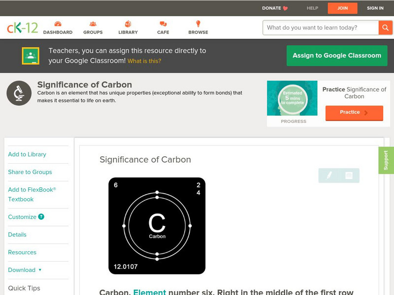 [Free Registration/Login may be required to access all resource tools.] The abundance of carbon and how it forms bonds.