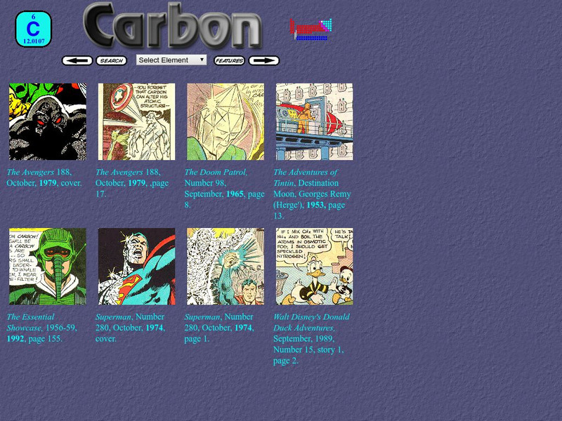A whole bunch of comic pages that mention the element carbon and in most cases add a little bit of information about the element's properties.