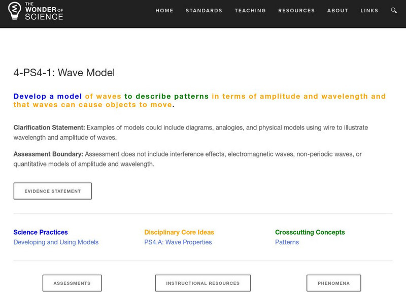 Work samples, phenomena, assessment templates, and videos that directly address standard 4-PS4-1: wave model.