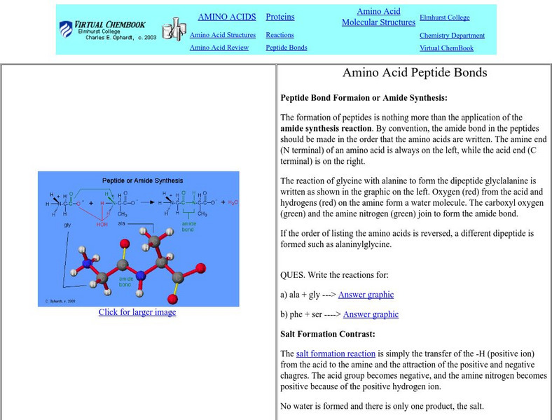 Virtual Chembook: Amino Acid Peptide Bonds