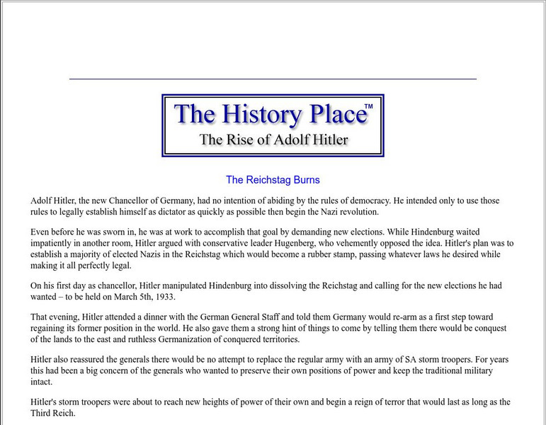 The History Place: The Rise of Adolf Hitler: The Reichstag Burns