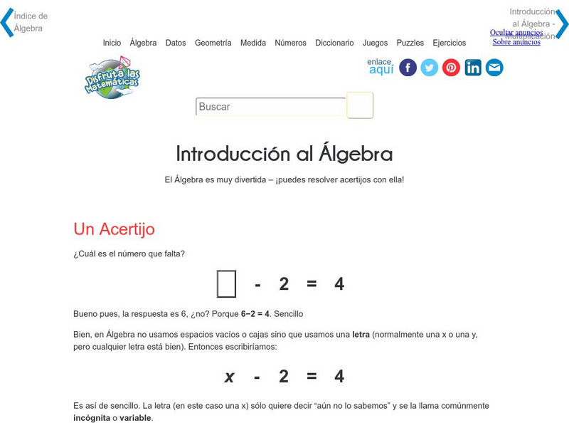 Disfruta Las Matematicas: Introduccion Al Algebra