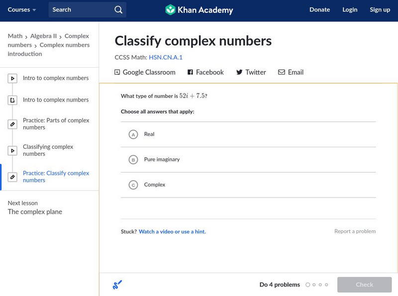 Khan Academy: Classify Complex Numbers