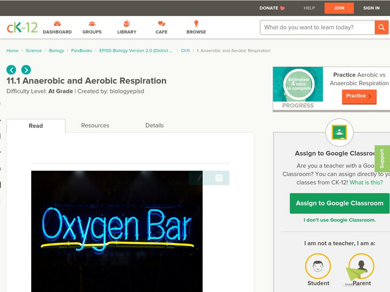 Ck 12: Plix: Anaerobic vs. Aerobic Respiration: Types of Respiration