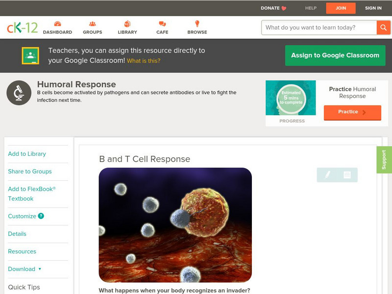 Ck 12: Life Science: B and T Cell Response