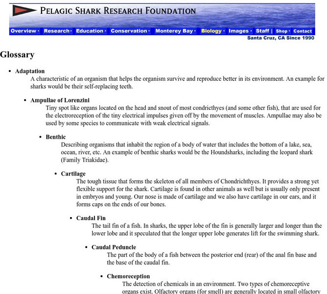 A glossary for terms relating specifically to sharks, many of which are relevant to the entire chondrichthyes class.