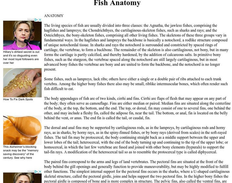 This site, which is given by LookD.com, provides a basic overview of fish anatomy. The information is medium in length, and factual, making it worth checking out on the subject.