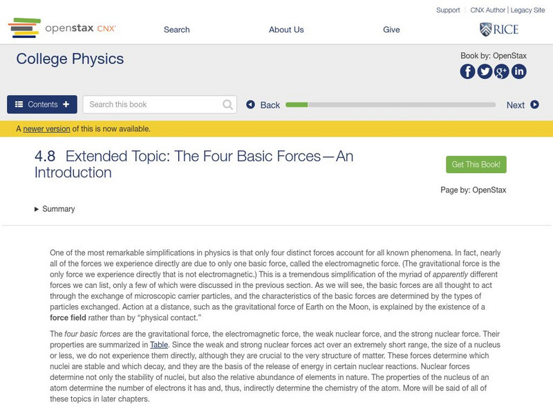Open Stax: Extended Topic : The Four Basic Forces an Introduction