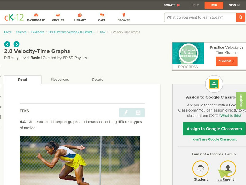[Free Registration/Login may be required to access all resource tools.] Break down graphs illustrating velocity and time to understand motion.