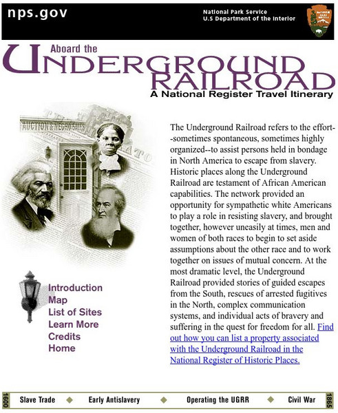 Learn about the fascinating people and places associated with the Underground Railroad as you visit the historic places on this travel register. Use the map or peruse the sites to find interesting facts and information.