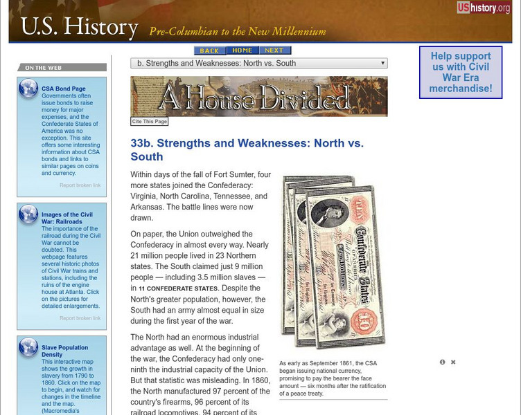 U.s. History: Strengths and Weaknesses: North vs. South