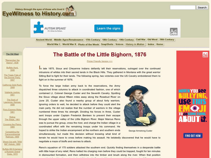 Eye Witness to History: The Battle of the Little Bighorn, 1876