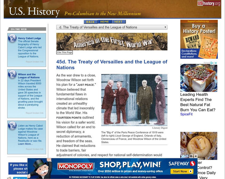 President Wilson lobbied for a "just peace" for the end of World War I. Read about his Fourteen Points that he thought would accomplish this. See how his plans for a League of Nations and the final terms of the Treaty of Versailles...