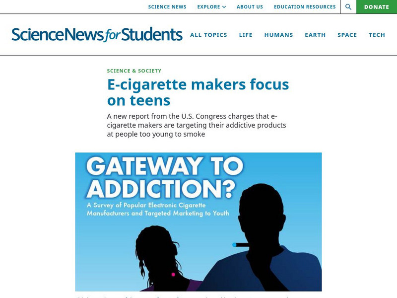 Article reports on a report issues by Congress that finds that e-cigarette manufacturers are aggressively marketing their products to teenagers. Includes a list of vocabularly words.