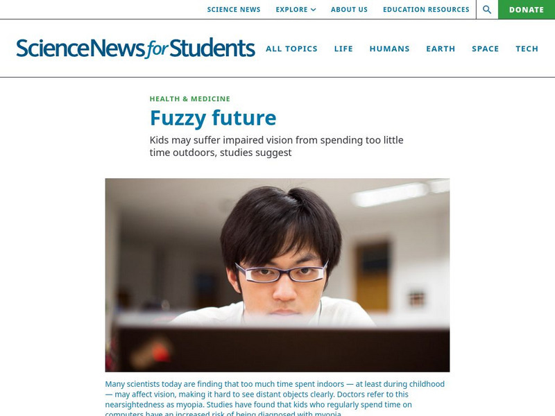 This article explains how too much time indoors as children may be leading to vision problems in young people, especially myopia. Article includes a vocabulary list and a printable word search.