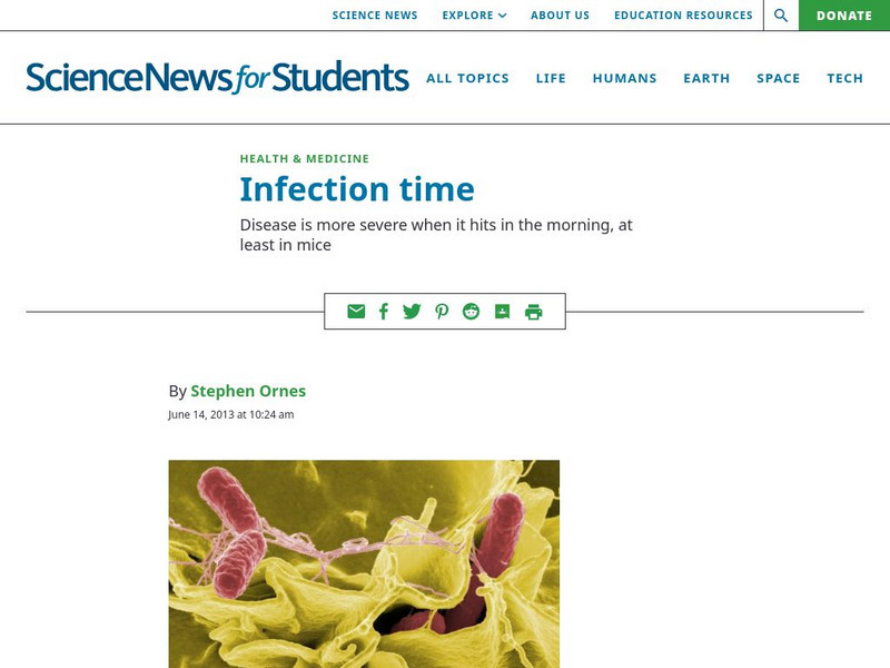 Article reports on a recent study that seems to indicate that what time of day an infection is contracted may impact how severe it is. Includes a vocabulary list of words from the article.