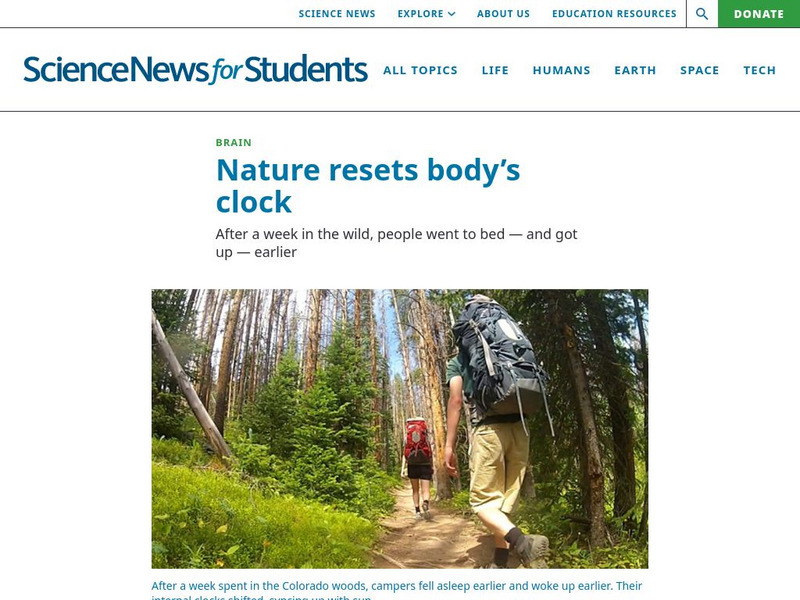 Article reports on a recent study which found that people who spent a week in the woods experience a shift of two hours in their internal clocks. Includes a list of vocabulary words from the article.
