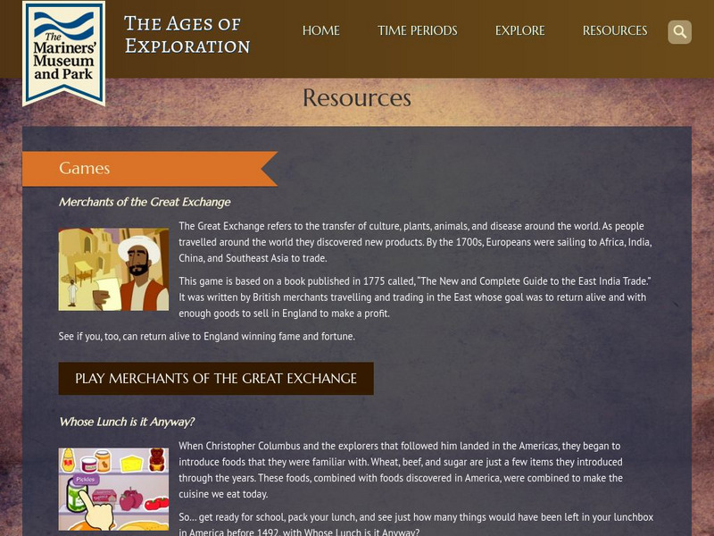 Scroll to the bottom of this page to access activity resources and lesson plans that encourage students to explore an understand the practicalities and difficulties involved in sailing to new places during the Age of Exploration.