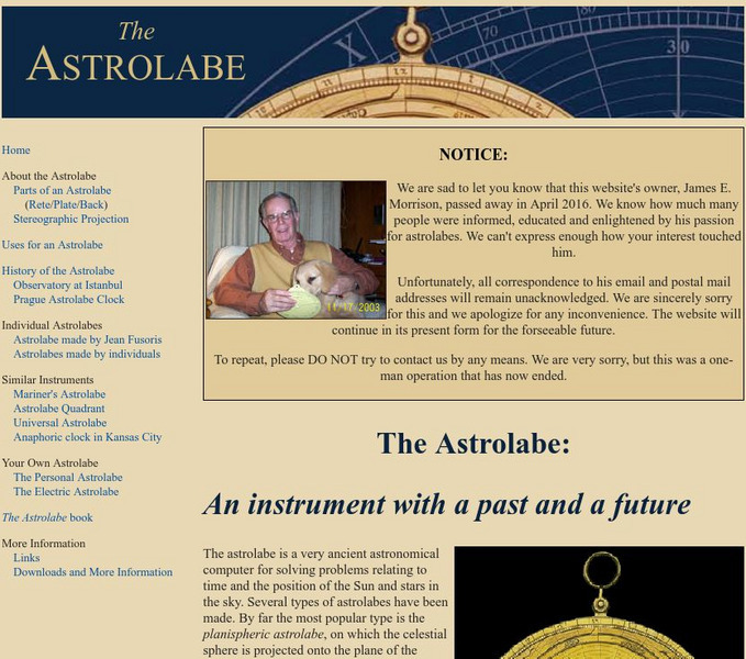 A description of the ancient astrolabes and how they worked. Provides information about definitions, collections, and also includes photos.